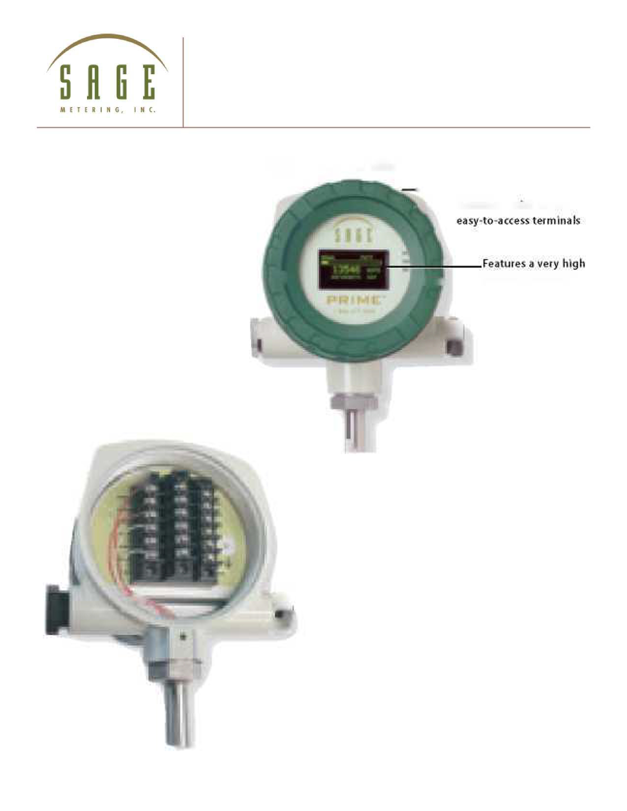 O Sage Prime é um dos medidores mais vendidos da linha de produtos Sage. Apresenta uma exibição OLED (LED orgânico) brilhante, de alto contraste e fotoemissivo de Taxa de Fluxo, Total e Temperatura em um invólucro NEMA 4 robusto, porém leve e de dupla face.